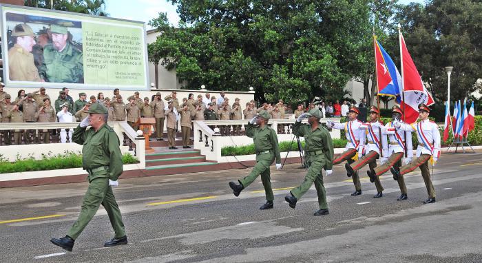Presentes en el acto se encontraban jefes principales de las Fuerzas Armadas Revolucionarias y el Ministerio del Interior, y una representación de los jubilados y fundadores de la institución docente de nivel superior. (Tomado de Granma)