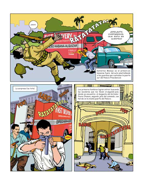 Como Lacoste no para de experimentar y exprimir sus potencialidades, saltó del dibujo exclusivamente humorístico a uno que se atiene a las líneas reales y proporciones físicas de la anatomía humana y de las formas de los objetos. Logró pasar de “palo pa´rumba” en dos campos donde la frontera gráfica es un farallón. Y vemos que lo hace con mucha dignidad. Ya dibujó un libro sobre la vida de Juan Gualberto Gómez, otro sobre los sucesos del 13 de marzo de 1957, otro sobre Kid Chocolate, y a solicitud de los chilenos trabaja en uno dedicado a Salvador Allende.