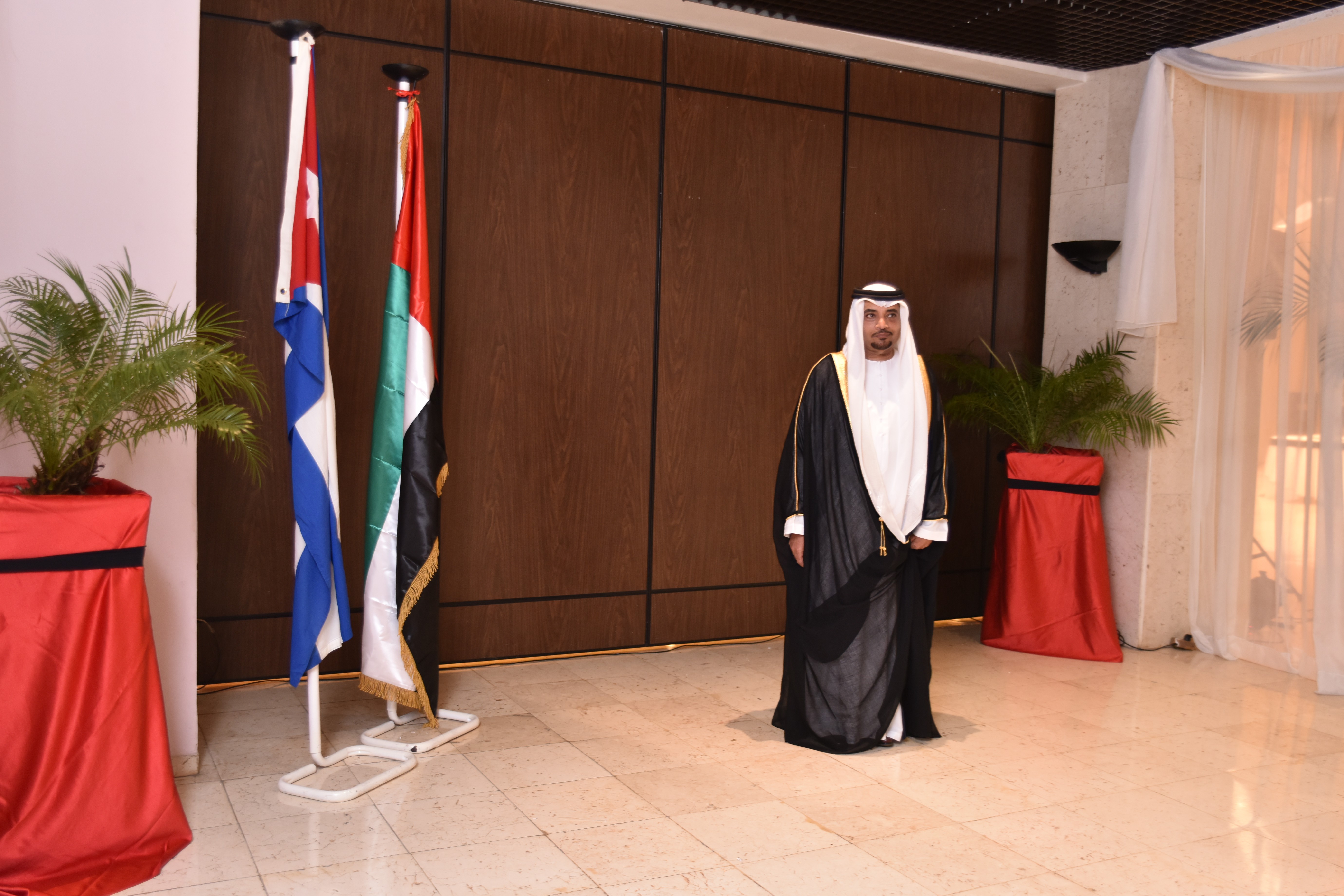 “La celebración de nuestra Fiesta Nacional por el cuadragésimo aniversario de la proclamación de los Emiratos Árabes Unidos, el 2 de diciembre de 1971, se corresponde con el inicio de una importante etapa en el desarrollo de las relaciones con la República de Cuba”, expresó en su alocución por la efeméride el Excmo. Sr. Yousuf Gharib Mahmoud Al Mahmod All-Ali, encargado de negocios de la embajada de ese país árabe.