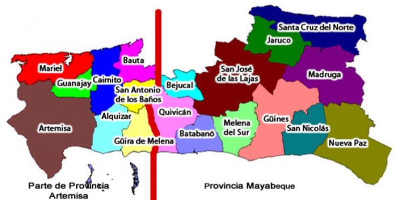 Ambos territorios se crearon a partir de la separación de la antigua provincia La Habana en dos, Artemisa, con 11 municipios; incluidos Bahía Honda, Candelaria y San Cristóbal, que formaban parte de Pinar del Río, y Mayabeque con 19.