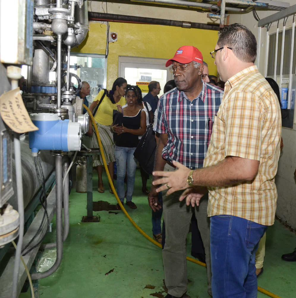 El recorrido incluyó la Empresa de Levaduras y Fermentación S.A. (Lefersa) y la Ronera Santa Cruz. Con una capacidad instalada de 2 mil toneladas, Lefersa es la única fábrica cubana que produce, comercializa y distribuye levadura seca. Allí, Valdés Mesa indagó acerca de las materias primas que se utilizan y subrayó la importancia de trazar planes de producción concretos, objetivos y bien pensados; además recalcó la necesidad de que este sea un proceso donde se les dé mayor participación a los trabajadores.