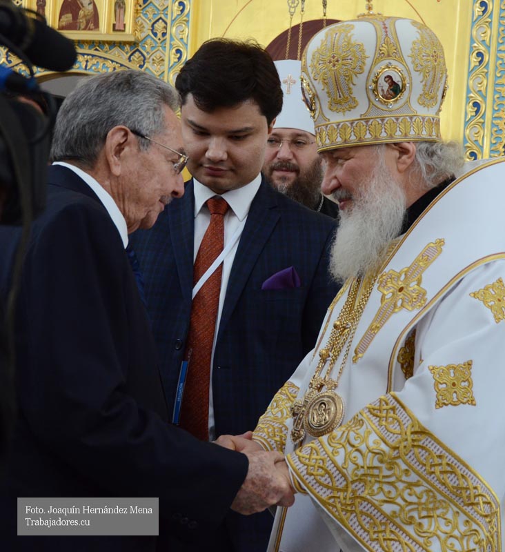 En el aeropuerto internacional José Martí, el Primado de la Iglesia Ortodoxa Rusa fue despedido por el Presidente de los Consejos de Estado y de Ministros, General de Ejército Raúl Castro, y ambos intercambiaron palabras minutos antes de que el Patriarca ruso tomara el avión de la compañía aérea Roccia.