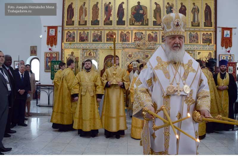 Un llamado a lograr la paz mundial hizo hoy su Santidad Kirill, Patriarca de Moscú y de Toda Rusia, al finalizar la Divina Liturgia en la Catedral Nuestra Señora de Kazán, oficio que concluyó con el abrazo cerrado con el Presidente de los Consejos de Estado y de Ministros, General de Ejército Raúl Castro Ruz.