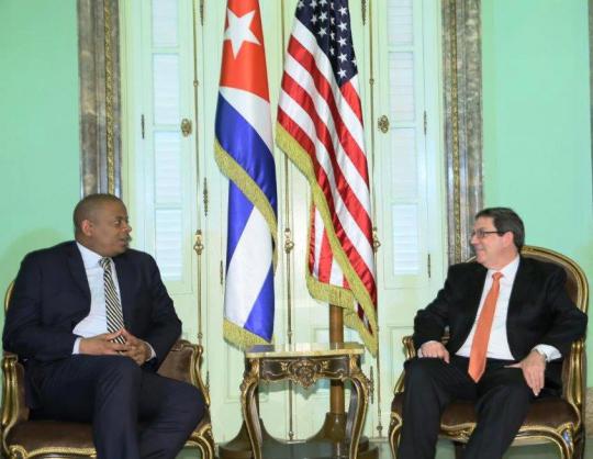 Bruno Rodríguez Parrilla, ministro de Relaciones Exteriores, recibió hoy en la sede de la Cancillería al Secretario de Transporte de los Estados Unidos, Anthony Foxx, quien viajó a Cuba para participar en la ceremonia de firma del Memorando de Entendimiento para el establecimiento de vuelos regulares entre Cuba y los EE.UU.