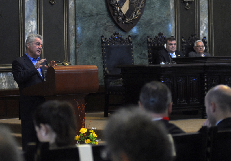 “Esta Unión Europea tiene dificultades. Desde el 2008, existe una crisis económica, todos los países miembros están golpeados. Austria es de los más desarrollados, pero nuestro crecimiento económico se ha debilitado con la crisis”, expresó el Presidente Federal de la República de Austria, Doctor Heinz Fischer, durante una conferencia magistral impartida este jueves, en el Aula Magna de la Universidad de La Habana.