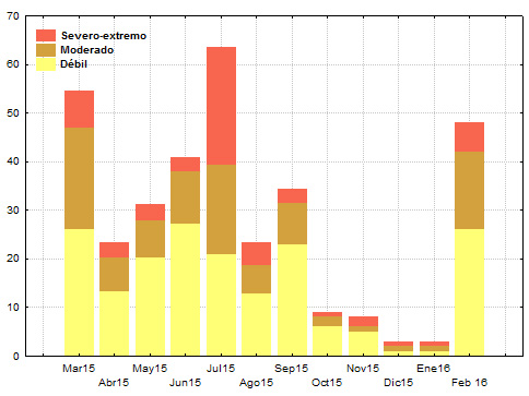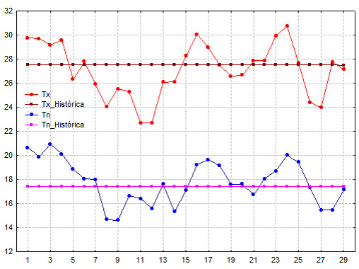 Tal comportamiento se encuentra enmarcado por la influencia del todavía fuerte evento El Niño – Oscilación del Sur (ENOS), que ahora comenzó su declinación de forma gradual y debe llegar a la normalidad a mediados del presente año.