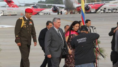 El primer vicepresidente de Cuba, Miguel Díaz-Canel, arribó este sábado a Caracas para participar en el homenaje por el tercer aniversario de la muerte de Hugo Chávez (1954-2013), según reporta la agencia PL