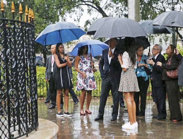 6:20 pm: El presidente de Estados Unidos Barack Obama comenzó el recorrido por el centro histórico de La Habana Vieja acompañado de la Primera Dama Michelle y sus dos hijas Malia y Natasha.