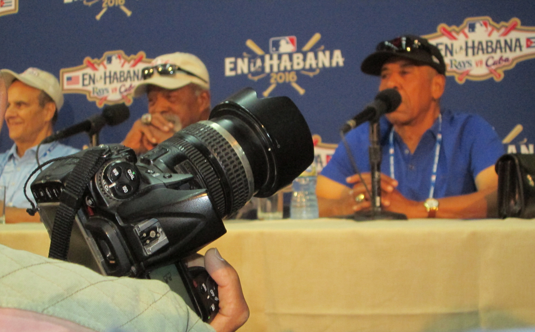 El dialogo con periodistas ocurrió en el salón Adolfo Luque del estadio capitalino Latinoamericano, en un ambiente de preparativos, expectación y tensiones, lógicas sin duda a solo 24 horas de que los Rayos de Tampa Bay se midan a la selección nacional cubana en presencia del mandatario estadounidense Barack Obama, quien realiza una visita oficial a la isla.
