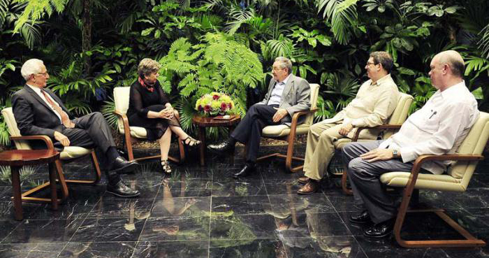 El General de Ejército Raúl Castro Ruz, Presidente de los Consejos de Estado y de Ministros de la República de Cuba, recibió en la tarde de este jueves a la señora Alicia Bárcena Ibarra, Secretaria Ejecutiva de la Comisión Económica para América Latina y el Caribe (CEPAL), quien se encuentra de visita en nuestro país.