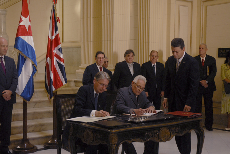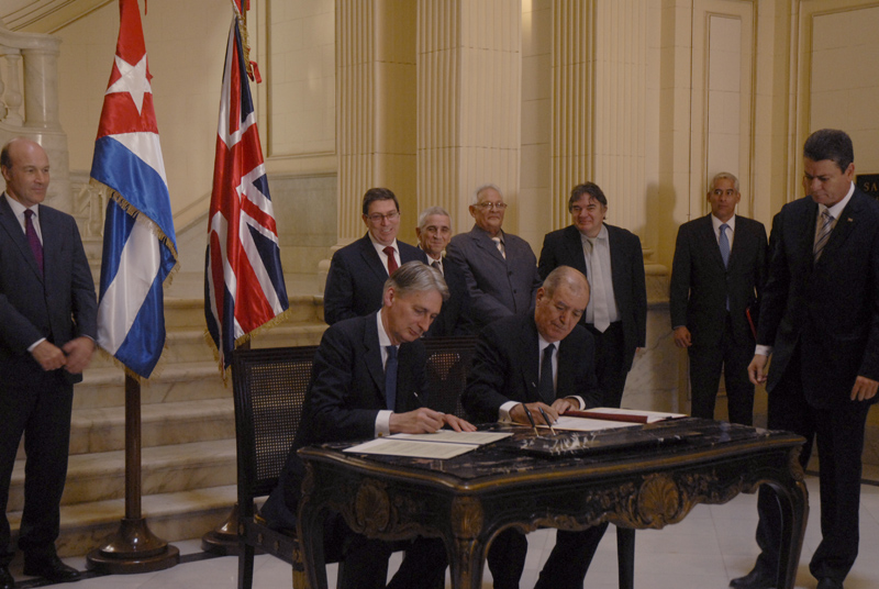 Los documentos, por la parte británica fueron suscritos por el Excelentísimo Señor Philip Hammond, y por la cubana correspondió a los Ministros de Energía y Minas, Educación Superior, Cultura, y al Vicepresidente del Banco Central de Cuba.