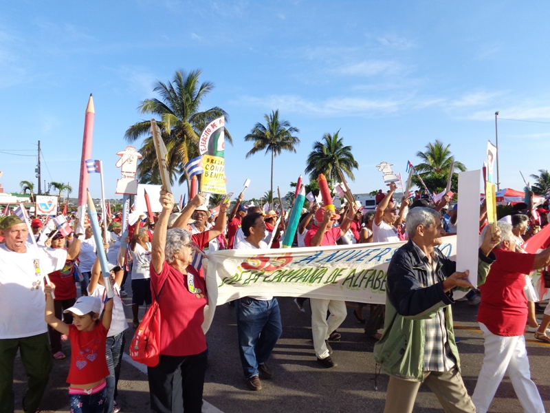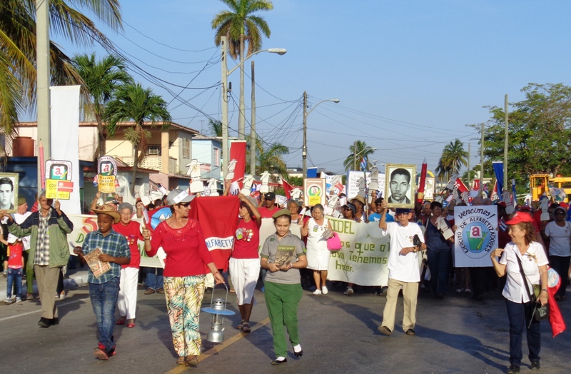 Con la misma disposición de hace 55 años, un bloque integrado por alfabetizadores se volvió a armar de lápices, cartillas y faroles, como palpable muestra de la prioridad que Cuba le concedió a la Educación desde el mismo triunfo de 1959 y un tributo a quienes asumieron la honrosa misión.
