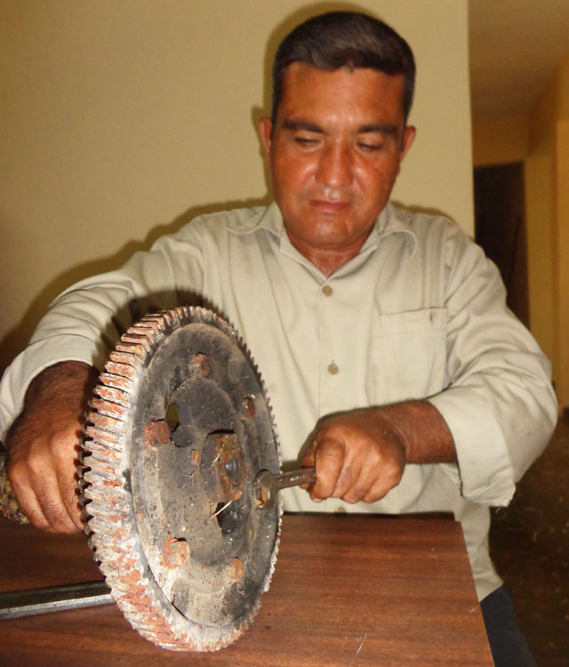 “El equipo fue trasladado hacia nuestro taller, donde le adaptamos un motor A01-M de una motoniveladora, ya que el original se había fundido y no tenía solución, por eso me impuse la meta y la cumplí con la realización de 13 innovaciones.