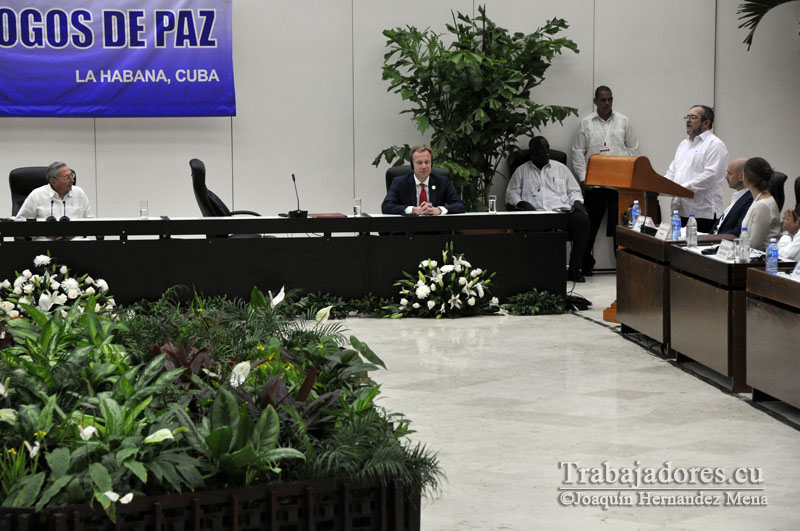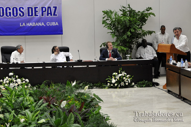 El presidente cubano recordó que el 19 de noviembre de 2012 comenzó a trabajar en La Habana la Mesa de Conversaciones entre el Gobierno de Colombia y las Fuerzas Armadas Revolucionarias de Colombia – Ejército del Pueblo, y que entonces no pocos vaticinaron su fracaso, “pero los trascendentales acuerdos que hoy se han anunciado por la Mesa nos acercan, como nunca antes, al fin del conflicto armado que por más de cinco décadas ha sufrido el hermano pueblo colombiano.