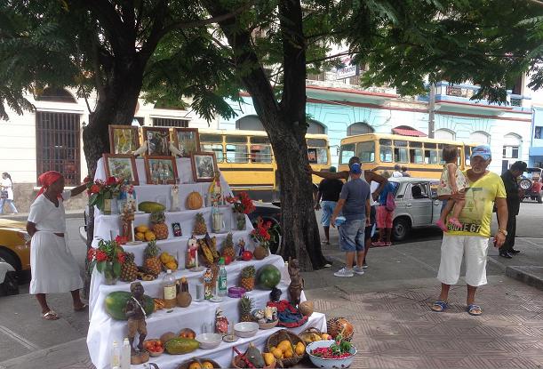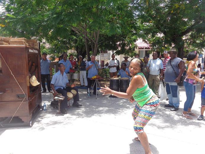Grupos portadores de la cultura popular tradicional participantes en la Fiesta del Fuego, que del 3 al 9 de julio tienen lugar en Santiago de Cuba, muestran su arte en diversos espacios públicos, hecho que confirma el espíritu de este jolgorio.