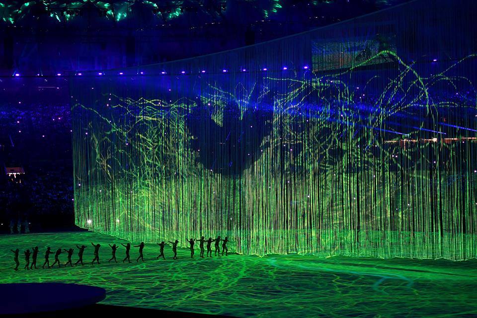 Desde la creación de la vida a través de una gota del agua hasta los grandes adelantos científicos-técnicos que han llevado a Brasil a ser la novena economía del planeta se combinaron a través de la magia de las luces y el sonido, dos componentes esenciales para una inauguración en cual se recortaron los miembros de las delegaciones para el desfile, con el objetivo de hacer más rápido el pase de lista de las 208 delegaciones.