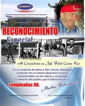 Gracias por confiar siempre en los jóvenes, gracias por habernos permitido llegar como atletas a los lugares más altos, gracias por hacer que el deporte cubano, conquista de nuestra Revolución, goce de prestigio a nivel internacional.
