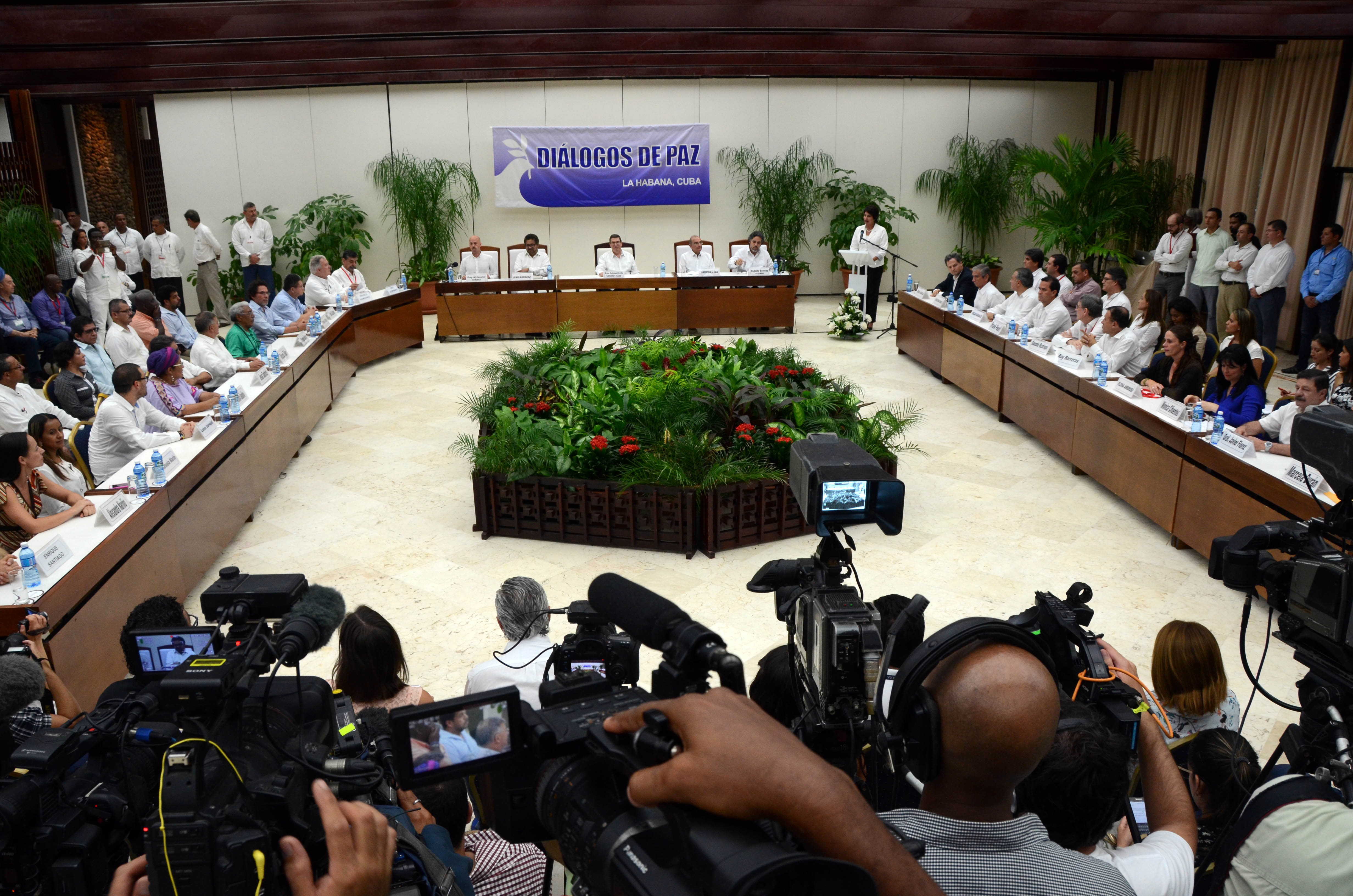 «Del cónclave de La Habana ha surgido humo blanco. Habemus Pacem, Tenemos paz»,  expresó con emoción el comandante Iván Márquez, jefe del equipo negociador por la fuerza guerrillera; mientras que el doctor Humberto de la Calle, al frente de la delegación gubernamental, afirmó: Hoy hemos llegado a la meta (…) La guerra ha terminado.