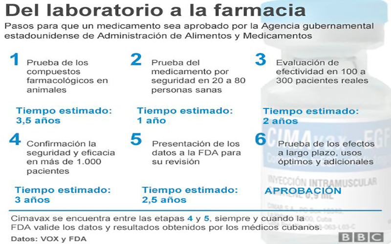 Cualquier fármaco que pretenda comercializarse en el mercado de Estados Unidos, debe ser antes avalado por la Administración de Medicamentos y Alimentos (FDA, por sus siglas en inglés), cuyos ensayos clínicos son rigurosos y toman tiempo, por lo que sería iluso esperar un pronto beneficio económico por esa vía.