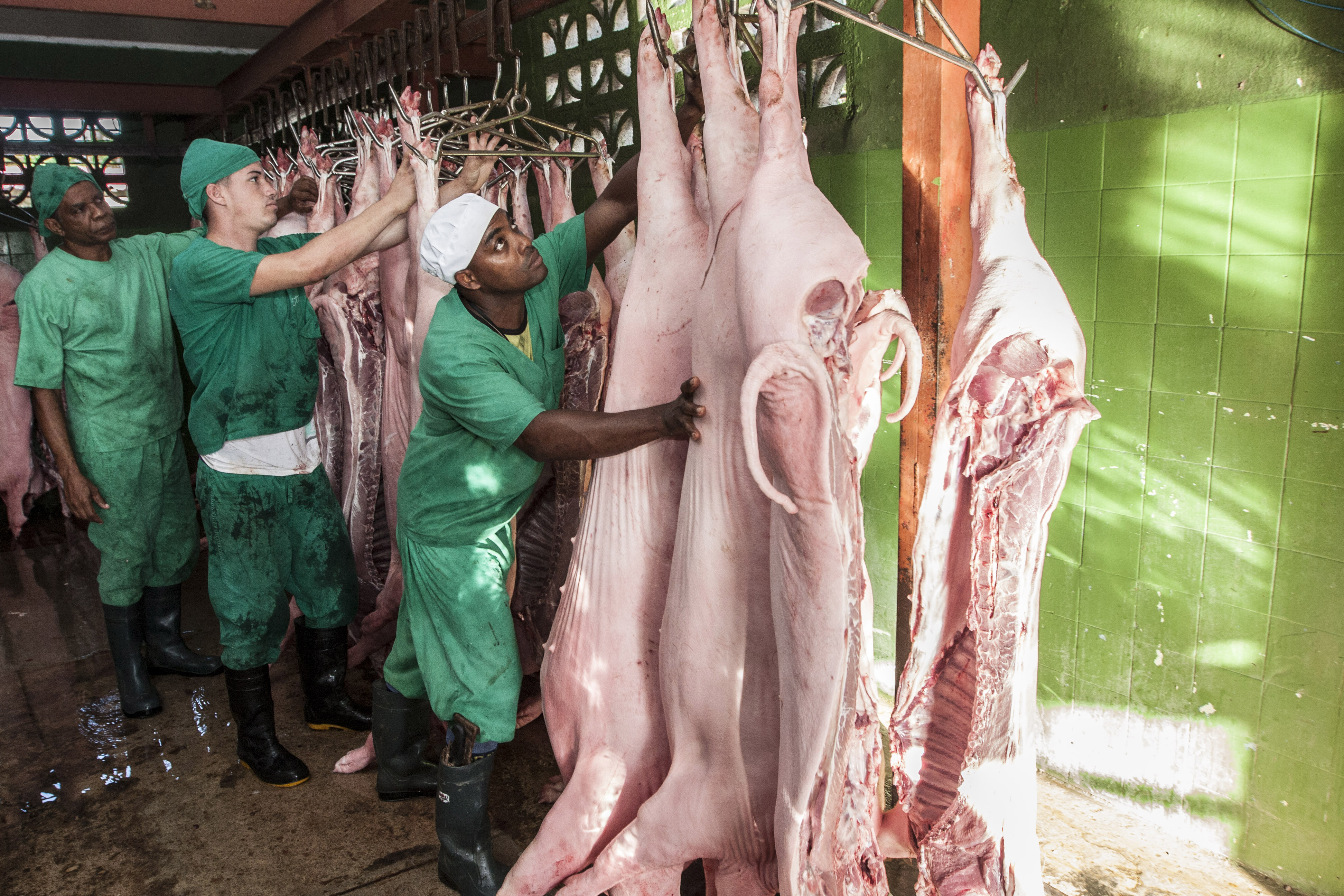 En recorrido la víspera por áreas del Matadero del Wajay, en La Habana, conocimos del sacrificio este domingo de 140 cerdos y que la estrategia para todo noviembre espera más de 13 mil animales —poco más de 535 cada día— para sumar mil 111 toneladas de carne en bandas, mientras que en diciembre se planifican más de 11 mil, para lograr 956 toneladas.