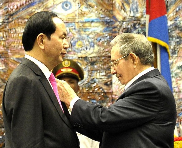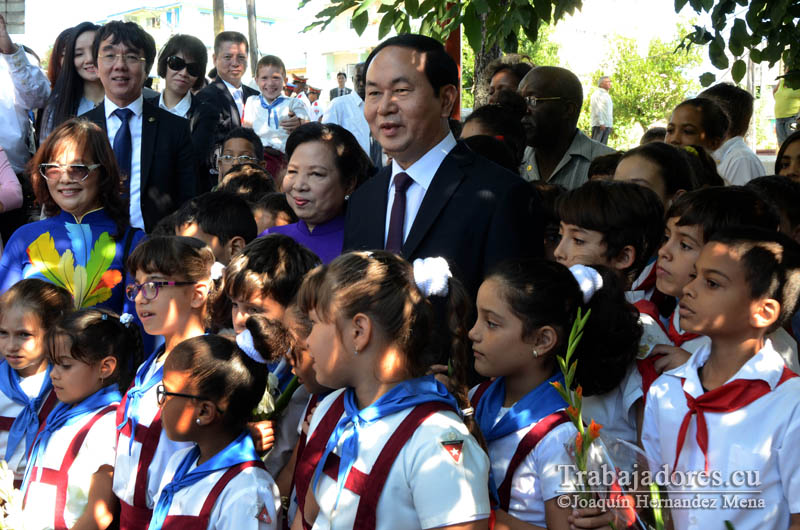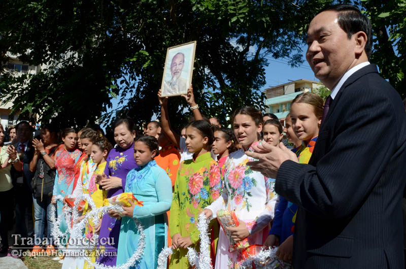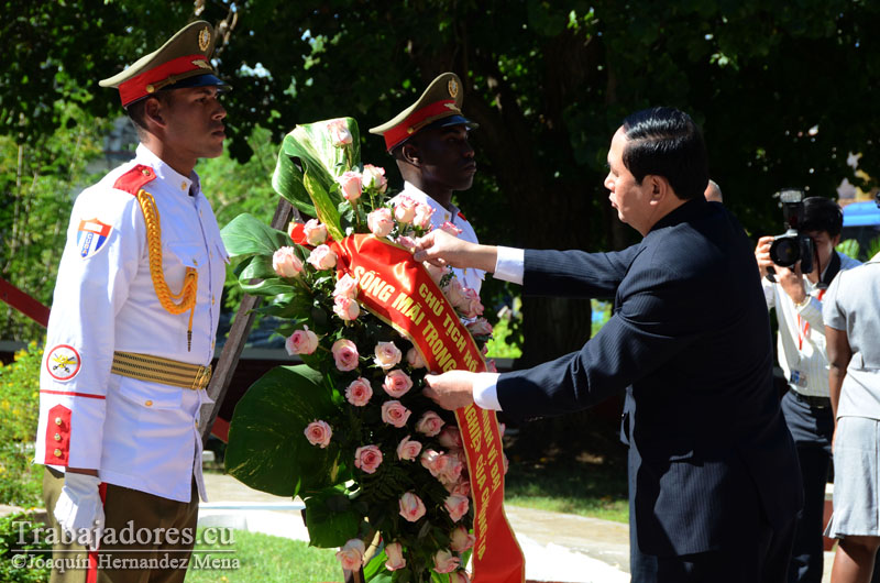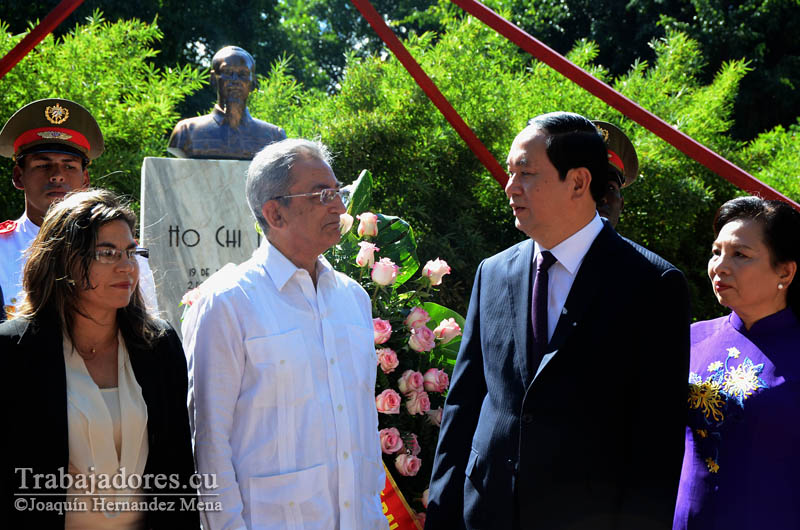 El presidente de la República Socialista de Vietnam, Tran Dai Quang depositó este martes una ofrenda floral ante el busto de Ho Chi Minh en La Habana. En la ceremonia se encontraba presente José Ramón Balaguer, miembro del Secretariado del Comité Central del Partido Comunista de Cuba (PCC) junto a otros miembros del Gobierno además de una representación de pioneros de la provincia.