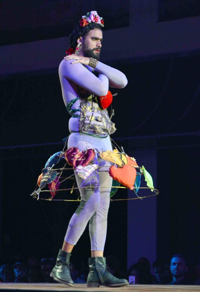 Con la delicadeza y glamour que caracterizan las magistrales confecciones de Mario Freixas, la maniquí Amanda Serrano imprimió sublime teatralidad a su personaje, al presentar un elegante vestido que rememora la época de los años 30, a partir del cuadro de Federico Beltrán, Figura de dama; y el joven actor Roberto Espinosa afianzó el sentido eminentemente conceptual de la indumentaria llevada por la excelsa diseñadora matancera Mariela Alemán, quien recreó el cuadro de Lesbia Vent Dumois Carta de Frida Khalo a Diego Rivera, empeño en el que revela la compleja personalidad de la apasionada pintora mexicana, cuya vida estuvo signada por desesperanzas e ilusiones.