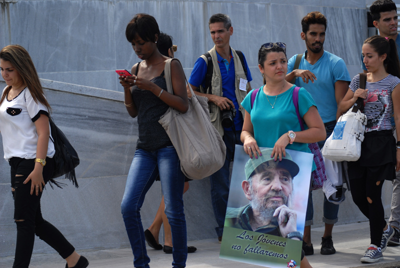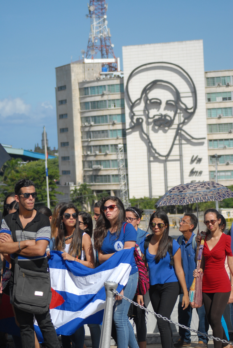 La plaza de la Revolución es el reflejo de cuán universal, querido y admirado ha sido y es el líder cubano Fidel Castro Ruz. A nuestro paso hacia el memorial José Martí, donde el pueblo capitalino, desde horas tempranas, rinde tributo a su Comandante en Jefe, uno encuentra personas de los más diversos países. Llevan fotos de Fidel, pulóveres con la bandera cubana o la de sus naciones; ellos se unen a las largas filas de los miles de cubanos que esperan llegar hasta el memorial.