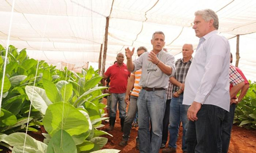 El primer vicepresidente de los Consejos de Estado y de Ministros, Miguel Díaz-Canel Bermúdez, conoció de las perspectivas de desarrollo y la situación actual de la campaña tabacalera durante su estancia en la Empresa de Acopio y Beneficio de Tabaco Lázaro Peña, en Artemisa.