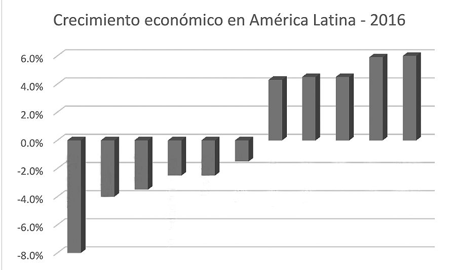 En el informe anual que emite la Comisión Económica para América Latina y el Caribe (Cepal) en diciembre, los especialistas proyectaron que para el 2017 las economías de la zona tendrán una frágil recuperación de un 1,3 %, cifra que indica una ligera recuperación si tenemos en cuenta que en el 2016 estas se contrajeron en -0,8 %, más que el -0,5 % del 2015.