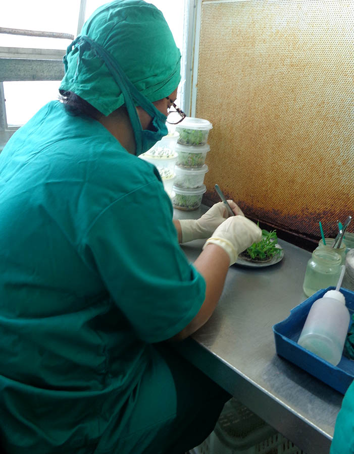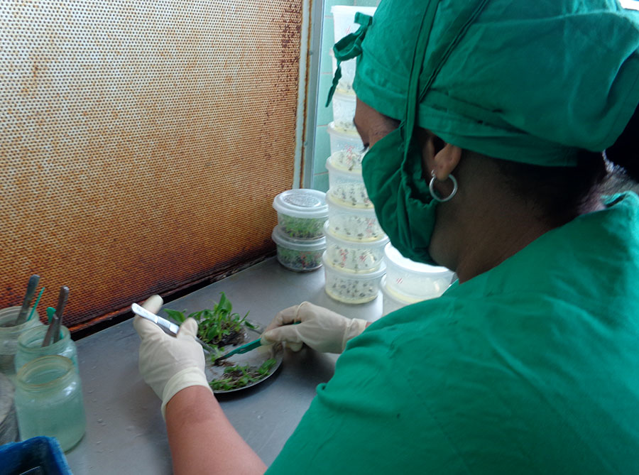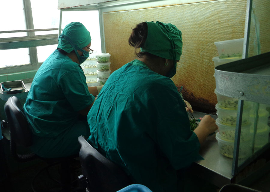También se contará, próximamente, con un conductímetro para determinar la calidad del agua para el medio de cultivo y seis esterilizadores por cuentas de vidrio. Con este último se sustituyen las soluciones de hipoclorito de sodio usado anteriormente y disminuye la exposición al cloro por parte de las operarias, añade.