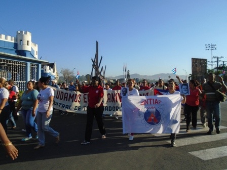 Más de 15 mil santiagueros afiliados a los 16 sindicatos de la provincia protagonizaron una marcha a través de la Avenida Patria, desde la plaza Antonio Maceo hasta el cementerio de Santa Ifigenia, donde descansan los restos del Héroe Nacional José Martí y el líder histórico de la Revolución cubana Fidel Castro Ruz.