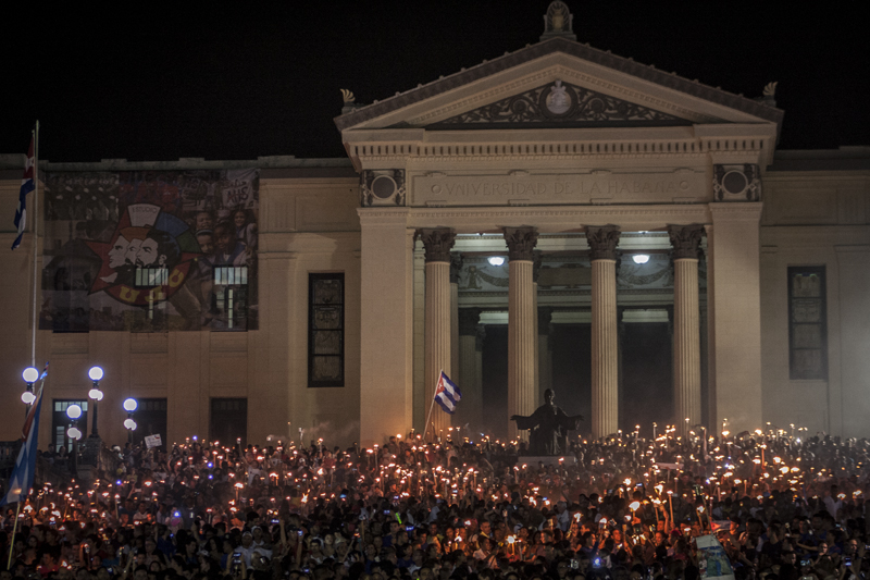 Una vez más, el Alma Mater de la Universidad de La Habana (UH) acogió a la masa estudiantil para la tradicional Marcha de las Antorchas, en homenaje al natalicio de José Martí. Precisamente a las diez de la noche, comenzó a descender por la escalinata la luz martiana, guía desde hace 64 años de las nuevas generaciones de revolucionarios.
