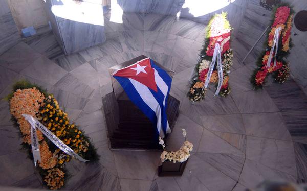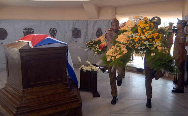 Finalizado el acto, los máximos dirigentes de la provincia depositaron flores ante la tumba de Martí y delante del monolito donde reposan los restos de Fidel.