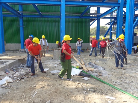 Los trabajadores villaclareños, encabezados por el secretariado provincial de la CTC y sus sindicatos, realizaron un trabajo voluntario en la nueva planta de Cloro Sosa que se construye en Sagua la Grande como parte de las actividades centrales por el aniversario 78 de la organización que fundó Lázaro Peña.