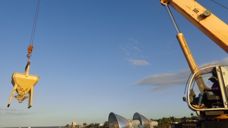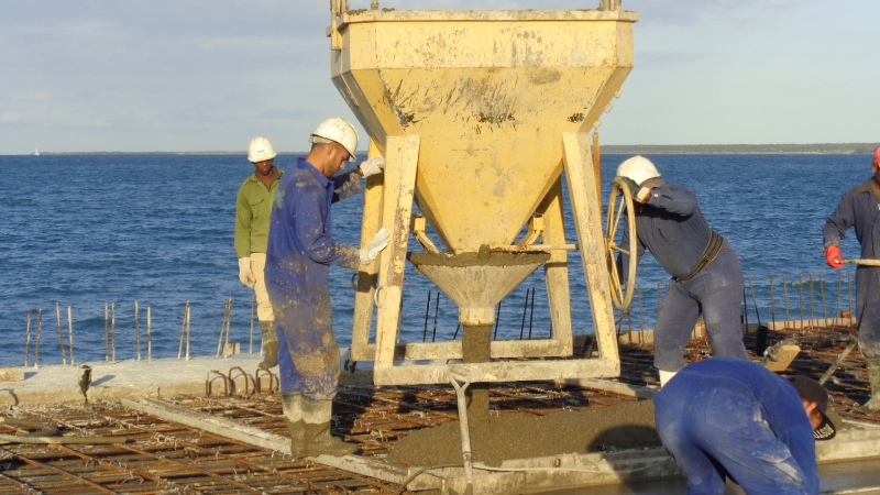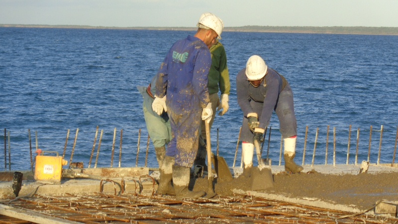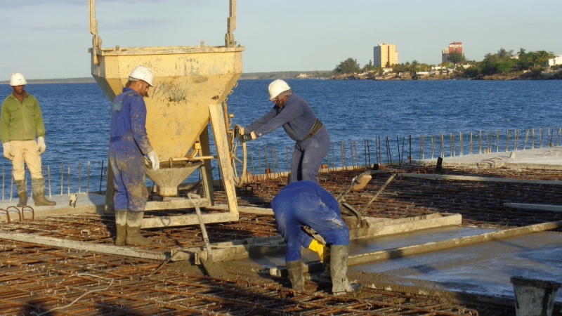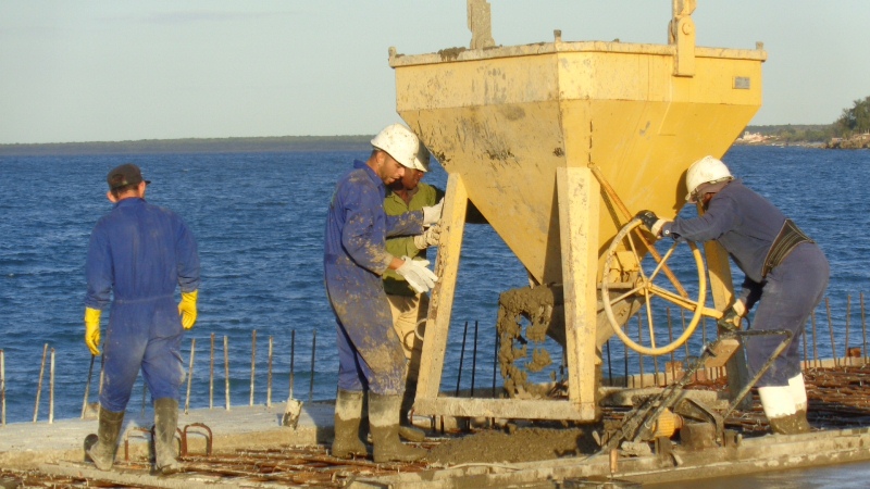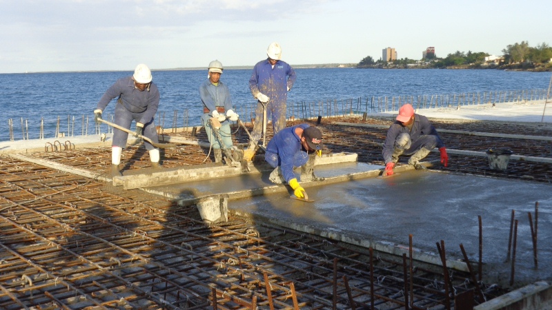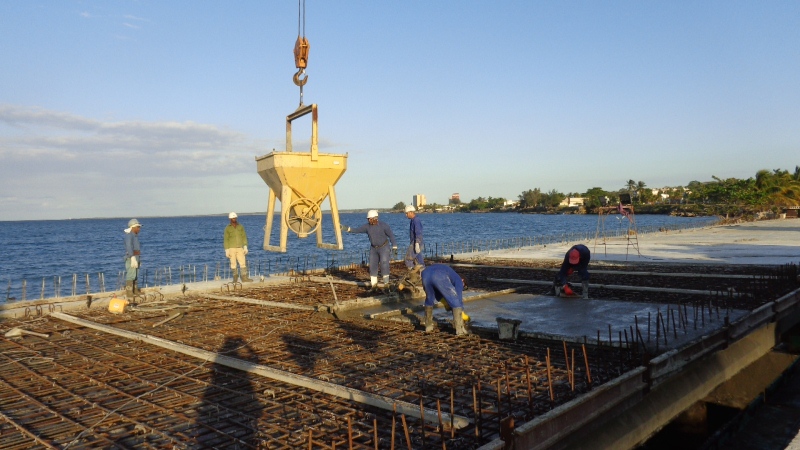 Favorecidos por la belleza de la bahía matancera y un tiempo invernal que los beneficia, la fundición u hormigonado comienza en la tarde y se extiende hasta pasada las 12 de la noche, precisó María Elena Tabío Alfonso, al frente de la inversión.