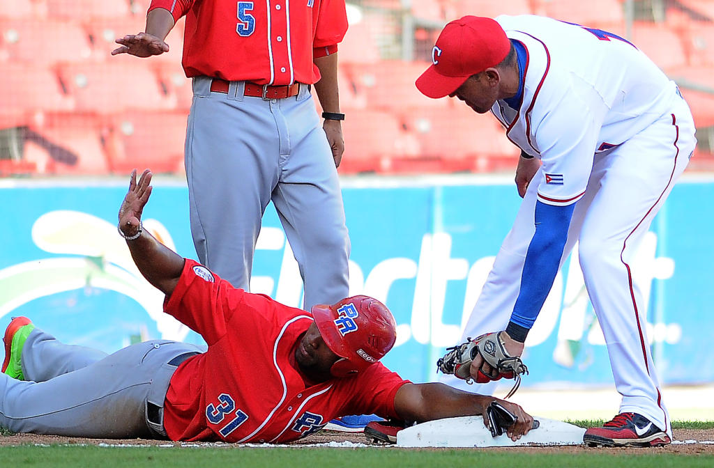 Principio del tercer inning: Morales conecta hit al LF. Padilla da machucón por primera, Saavedra la captura, pero Vladimir no entra a cubrir primera. Hombres en primera y segunda. Navarro toca la bola y es dominado en primera. Hombre en segunda y tercera. A bate Rosario, quien batea fly al center field, impulsa la primera de Puerto Rico. El corredor de segunda avanzó a tercera. Vidal dominado en fly al center.
