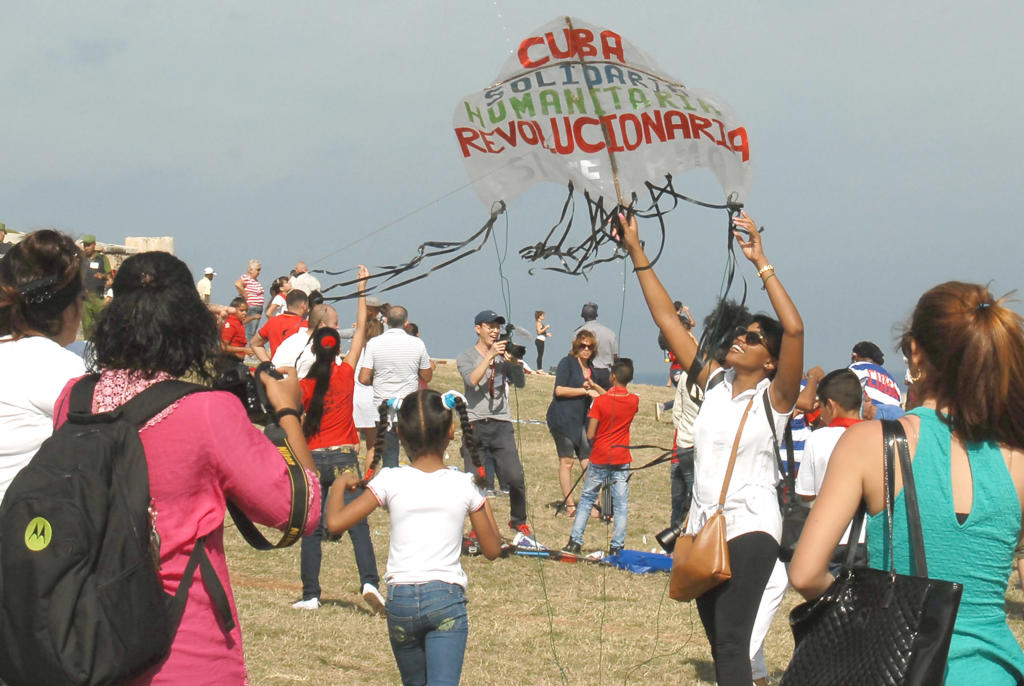Lleguen los papalotes como símbolo de un país que no se resiste a dejar de ser soberano en toda su dimensión. Atraviesen el cielo azul en busca de justicia y honestidad. Entre todos resaltaba uno con el mensaje principal de Cuba y la juventud: ¡Viva Fidel!