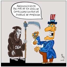 Cronistas al fin, Puebla y sus tradicionales (músicos) ofrecían oportunamente un retrato de la Organización que nació, y todavía existe, como instrumento para responder a los intereses de dominación de los Estados Unidos en la región, en contraposición a los anhelos de unidad e integración de los pueblos latinoamericanos y caribeños.
