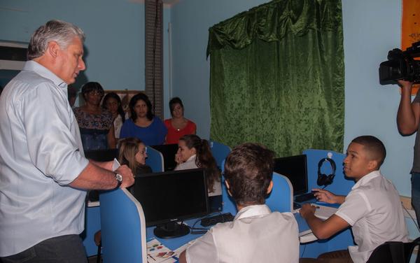 Díaz-Canel insistió en la necesidad de aprovechar los medios tecnológicos para amenizar la enseñanza, plataformas como CubaEduca y productos digitales como Pa’ que te eduques.
