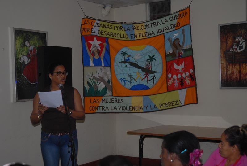 Elpidia Moreno Hernández, coordinadora nacional de la Marcha Mundial de Mujeres en Cuba, al intervenir en la actividad realizada en Mediatex, recordó que este es un movimiento que existe en más de 92 países, cuyo objetivo fundamental es eliminar las causas que originan la violencia y la pobreza contra la mujer.
