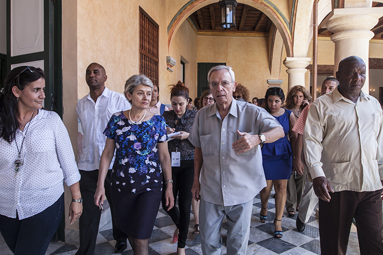 La directora general de la Organización de las Naciones Unidas para la Educación, la Ciencia y la Cultura (UNESCO), Irina Bokova, realizó este sábado una visita al centro histórico de la capital cubana, acompañada por el Doctor Eusebio Leal Spengler, Historiador de la Ciudad de La Habana.