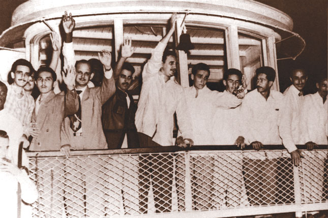 Pero las emociones se sucederían y quedarían plasmadas en imágenes para la historia: el abrazo emocionado de Fidel a Melba y Haydée, transido por el inevitable recuerdo de los caídos; la entrevista a la prensa donde, entre otros temas, Fidel subrayó el imperativo de la unidad de la oposición, pero no a nivel de los partidos, sino de lo que denominó “fuerzas morales”, entendidas como tales las organizaciones, sectores y personas capaces de enfrentar la tiranía sin compromiso con el pasado, y dentro de esas fuerzas consideró a los estudiantes y obreros como columnas vertebrales; las demostraciones de simpatía recibidas desde Nueva Gerona y durante el trayecto del tren que lo condujo desde Batabanó hasta La Habana; el jubiloso recibimiento a Fidel, a quien la multitud que acudió a recibirlo el 16 de mayo lo condujo en hombros…