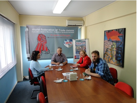 George Mavrikus, secretario general de la Federación Sindical Mundial (FSM), recibió en la sede de esa organización internacional a la Embajadora de Cuba en Grecia, Zelmys María Domínguez Cortina.