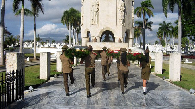 The president of the University of Havana’s Student Federation, Raul Alejandro Palmero, leading a delegation from that higher studies center, said it was an honor to pay tribute there to two spiritual fathers: Marti and Fidel Castro, whose ashes are interred also at that cemetery.