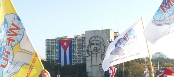 La Federación Sindical Mundial (FSM) exige el fin del bloqueo económico, financiero y comercial de Estados Unidos contra Cuba, que se le devuelva a la isla el territorio ilegalmente ocupado por la Base Naval en Guantánamo y que sus organizaciones afiliadas acudan el venidero 26 de julio a las sedes diplomáticas para hacer patente su respaldo y solidaridad.