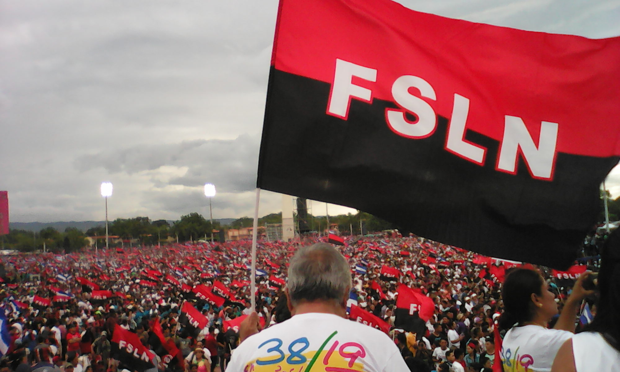 Banderas de Nicaragua y del Frente Sandinista para la Liberación Nacional en alto dominan el inmenso espacio. La probabilidad de lluvia no preocupa. Es más la motivación, el disfrute. Las coplas patrióticas enriquecen la efervescencia revolucionaria. Y como debe ser, los jóvenes llevan la voz cantante.