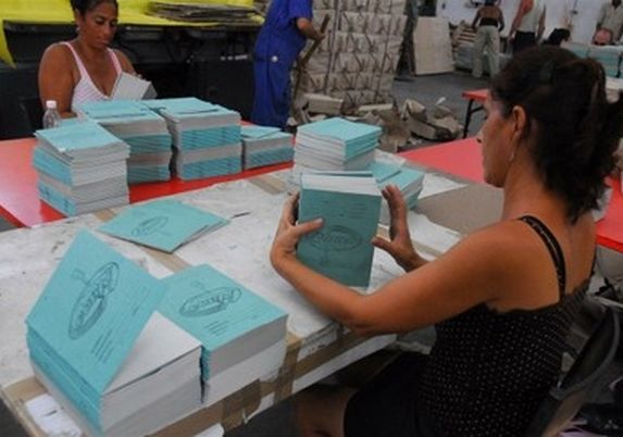 Otra importante misión de los trabajadores gráficos es la confección de libretas y materiales escolares para todo el sistema educacional cubano.