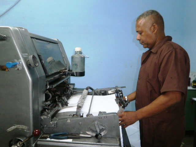 De ellos habla la destreza al mover los pliegos y la agilidad para manipular los envejecidos aparatos que entintan el papel. En lo que introducen hojas blancas y recogen las grafiadas ellos rememoran momentos cumbres. Por ejemplo, cuando tiraban el periódico Escambray, y también otros, cuando ante la escasez de materia prima, hicieron cerámicas, talabarterías, orfebrería… Los tres integran el colectivo de trabajadores de la unidad empresarial de base (UEB) Gráfica Sancti Spíritus.