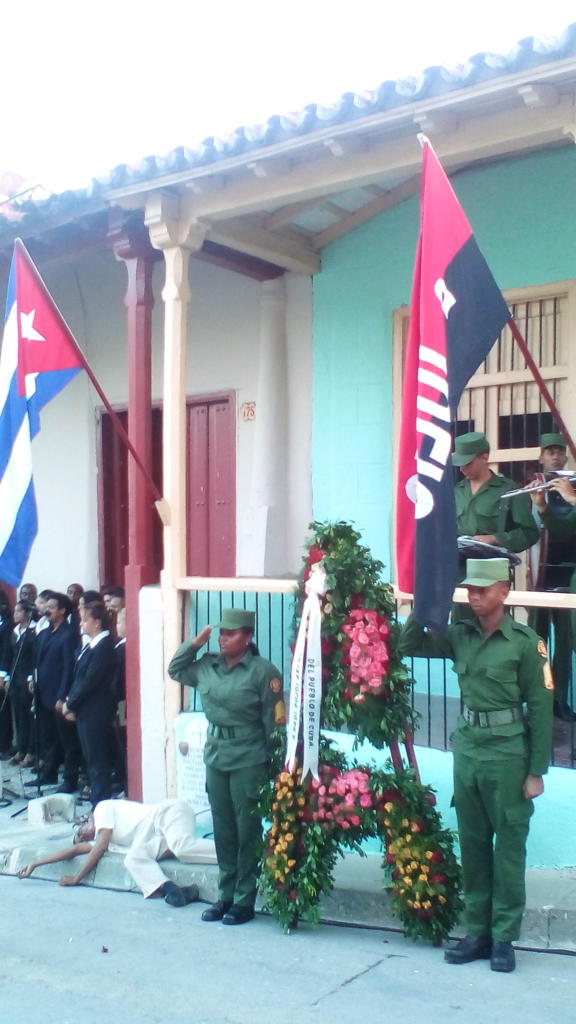 En las intercepción de San Germán y Callejón del Muro, sitio donde fueran masacrados Frank, líder del movimiento clandestino en Cuba durante la etapa insurreccional, y su compañero Raúl Pujol, se escenificó el cobarde asesinato de ambos jóvenes, se entonaron canciones y poemas y se colocaron ofrendas florales en nombre del pueblo de Cuba.