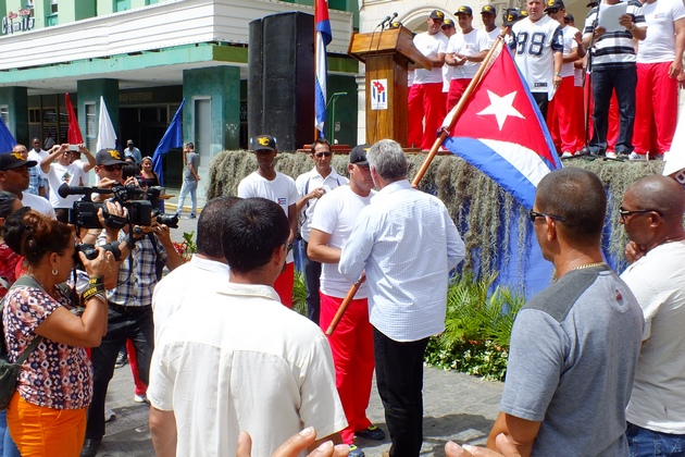 Miguel Díaz Canel Bermúdez, vicepresidente primero de los Consejos de Estados y de Ministros, abanderó el equipo de béisbol de Villa Clara y recorrió además obras sociales que se ejecutan en la provincia.
